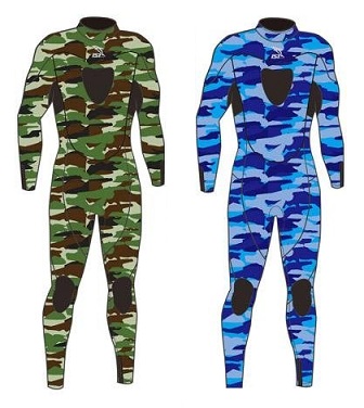 • Single-piece 3mm camouflage spearfishing suit for hunting in warm waters.