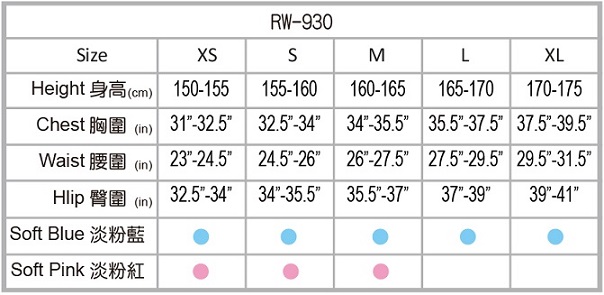 • Colors: RW-930-S.BL (Soft Blue) RW-930-S.PK (Soft Pink)