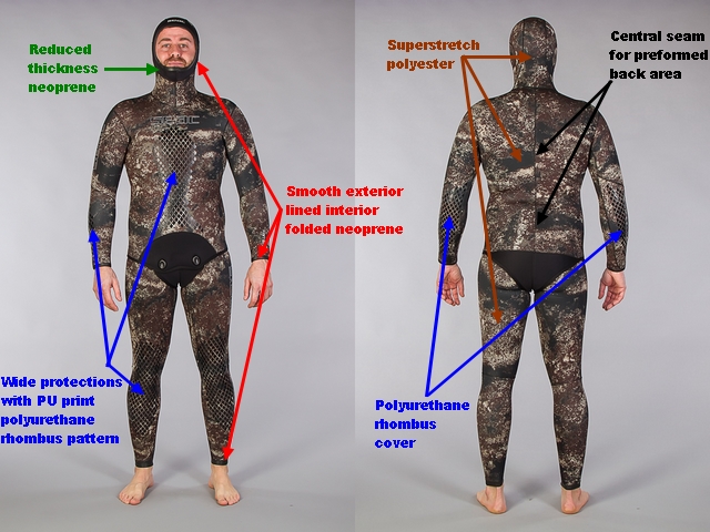 • Outer lining : Neoprene / Latest generation Extraflex superelastic Nylon with special exclusive SEAC three-dimensional camouflage pattern