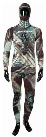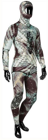 Salvimar’s Next 3.5mm Two-piece wetsuit utilizes an open-cell neoprene design with elastic NEXT camouflage exterior lining. Constructed for an ergonomic fit with a preformed cut, including adjustable button closing.