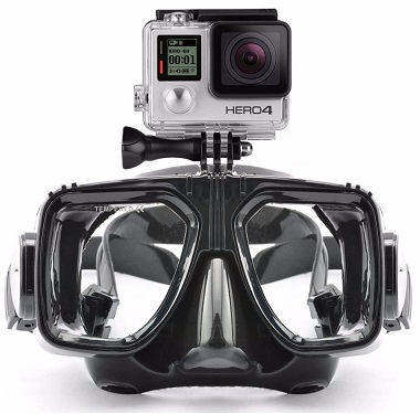 Diving mask untuk kamera action GoPro / Xiaomi Yi / SJCAM dan kamera sejenisnya. Kaca menggunakan tempered glass berkualitas yang anti embun pada saat digunakan di air. Dengan ini, Anda dapat merekam video di dalam air / pada saat diving dengan mudah.