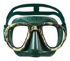 Spearfishing and freediving mask. As of 2014 the new Alien Camu 3D mask has the same fit, low volume, frame and lenses as its predecessor OMER Alien, but features a new ribbed design on the exterior of the skirt and a brown camo pattern on the frame.