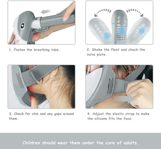 3. High elasticity adjustable shoulder strap and mask matches your face perfectly. The breathing tube has a silicone belt to prevent the breathing tube from being lost.