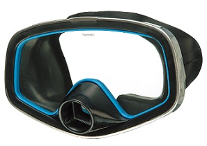 • Black rubber facial mask skirt and strap for comfort fitting.