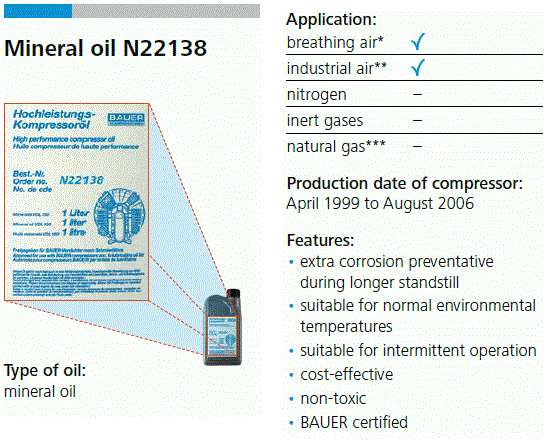 Germany BAUER breathing air compressor special brand of lubricating oil, mineral oil, N22138