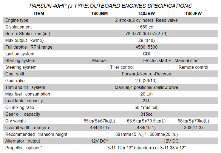 T40JBML - OUTBOARD MOTOR PARSUN 40 PK COPY YAMAHA 40 PK CAPSULE LONG JET (2 STROKE)
