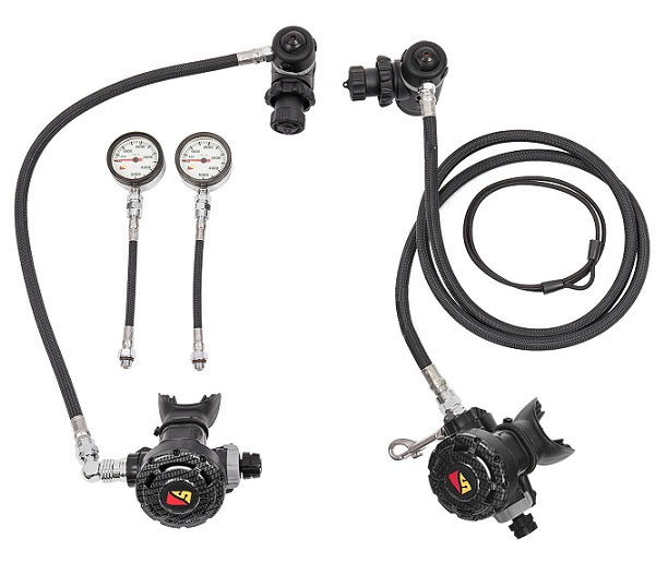 SIDEMOUNT REGULATOR 1ST STAGE DIVERITE XT1 (2) + OCTOPUS 2ND STAGE DIVERITE XT2 (2) + GAUGE DIVERITE 52MM (2) + LP HOSE 2ND STAGE RUBBER 7' RIGHT AND 22" RIGHT