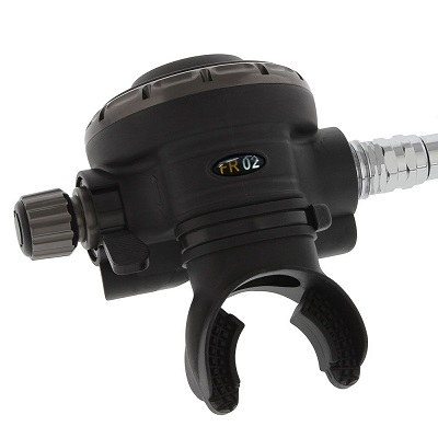 The large diaphragm and exhaust valve provide responsive inhalation and easy exhalation in all positions. An adjustable inhalation effort knob sets the cracking resistance to your preference and the dive/pre-dive switch minimizes free flow in when used as a backup.