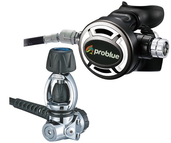 REGULATOR 1ST STAGE PROBLUE FS850PLUS YOKE DIAPHRAGM BALANCED + OCTOPUS 2ND STAGE PROBLUE RO19 + LP HOSE 2ND STAGE RUBBER BLACK