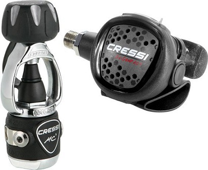 REGULATOR 1ST STAGE CRESSI MC5 YOKE + OCTOPUS 2ND STAGE CRESSI COMPACT + LP HOSE 2ND STAGE RUBBER BLACK