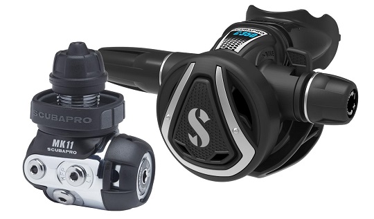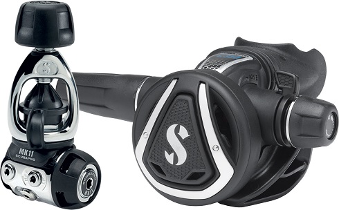 REGULATOR 1ST STAGE SCUBAPRO MK11 YOKE + OCTOPUS 2ND STAGE SCUBAPRO C350 + LP HOSE 2ND STAGE RUBBER BLACK