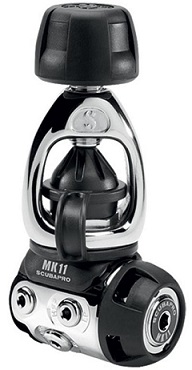 • The MK11's polished chrome forged brass body features identical high pressure and low pressure ports on each side so you can hook it up to your tank in either the up or down position while maintaining the same port layout. Also, two of the low pressure ports are high-flow, delivering about 15 percent more air than the standard low pressure ports. This means lots of effortless airflow with every breath