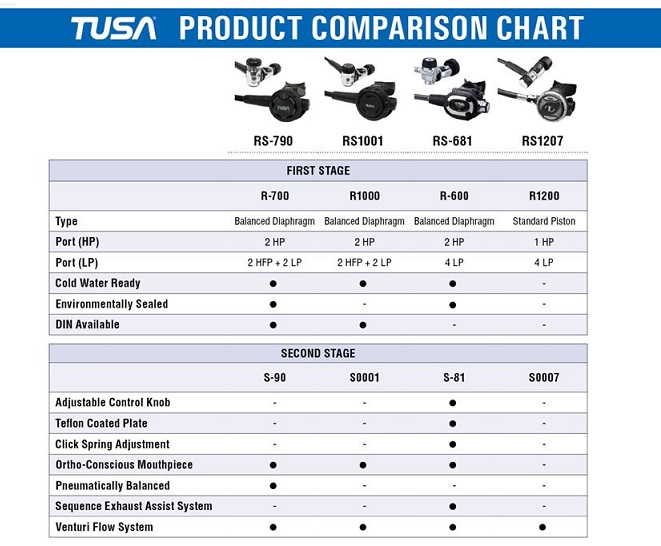RS-1001 - REGULATOR 1ST STAGE TUSA R-1000 YOKE + OCTOPUS 2ND STAGE TUSA S-0001 + LP HOSE 2ND STAGE RUBBER BLACK