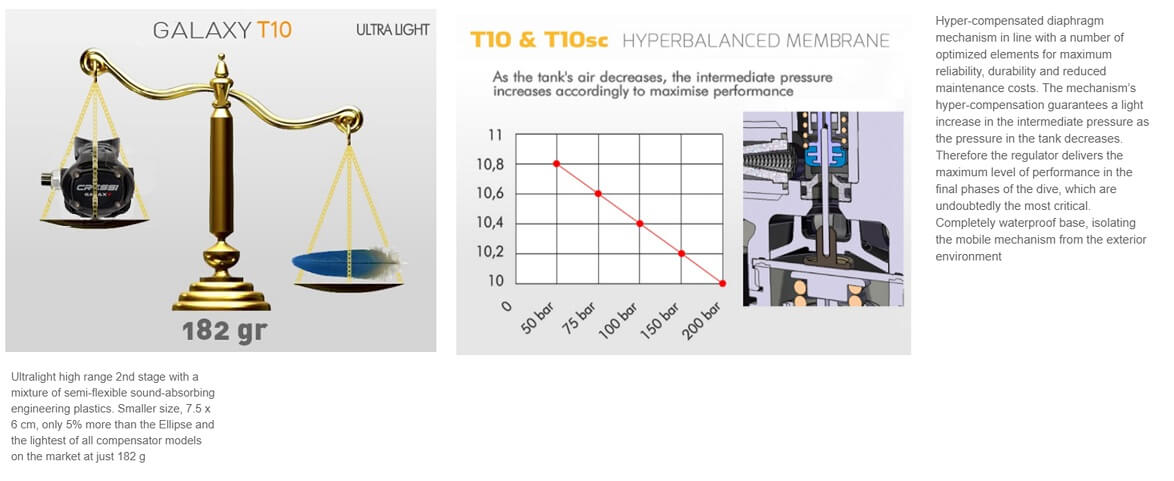 • Therefore the regulator delivers the maximum level of performance in the final phases of the dive, which are undoubtedly the most critical.