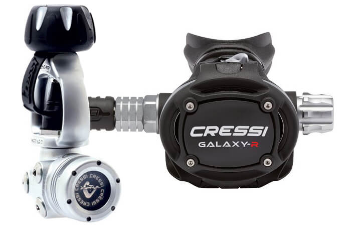 REGULATOR 1ST STAGE CRESSI T10 SC CROMO YOKE + OCTOPUS 2ND STAGE CRESSI GALAXY-R ADJ + LP HOSE 2ND STAGE RUBBER BLACK