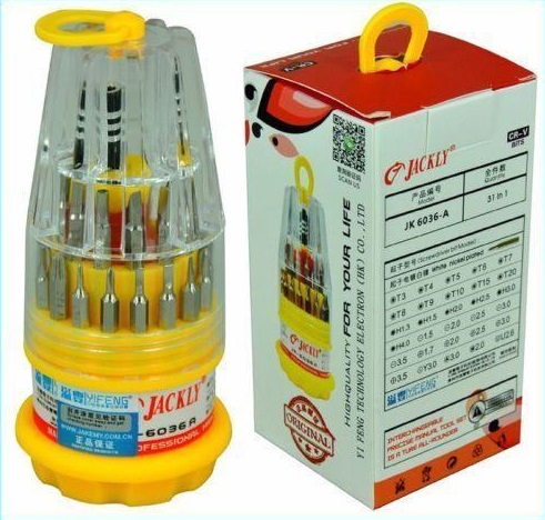 Jackly JK6036-B Screwdriver Set comes with a professional model, has 31 types of magnetic screwdriver head with a nickel material that has a high population density