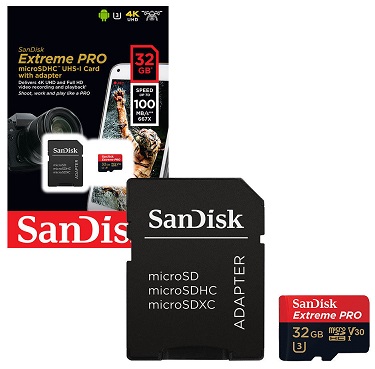 MICRO SD CARD CAMERA SANDISK EXTREME PRO CARD READER CLASS 10 (100 MBPS) - 32 GB