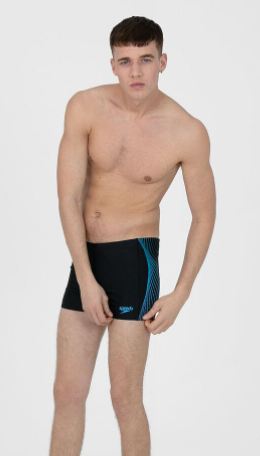 Sleek and stylish black aquashort with the side panels featuring our modern twisting ripple graphic in bright blue. Using our PowerFlex Eco fabric, which is made from recycled yarns, is chlorine resistant and feels soft against the skin so it's good for you and good for the environment. A drawstring waist provides comfort and security, ideal for everyday swim fitness training.