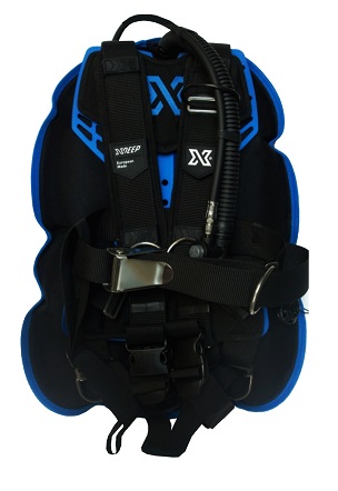 BC system with quickly adjustable NX Series scuba harness and additional 3D Mesh pads of shoulder straps.