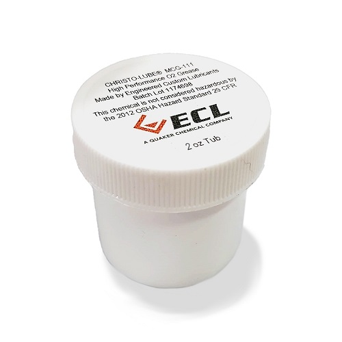 • CHRISTO-LUBE® MCG 111 is a fully fluorinated grease thickened with PTFE which operates under extreme temperature conditions, has outstanding stability with oxygen and excellent compatibility with metals, plastics and elastomers.
