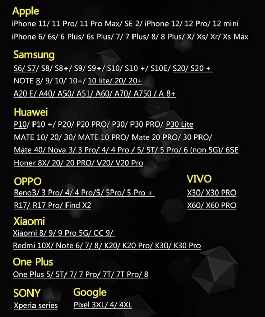 • P10/ P10+/ P20/ P20 PRO/ P30/ P30 PRO/ P30 Lite/ Mate 40