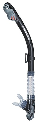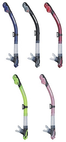 • The dry snorkel features a hinged valve that prevents water entering the snorkel while submerged.