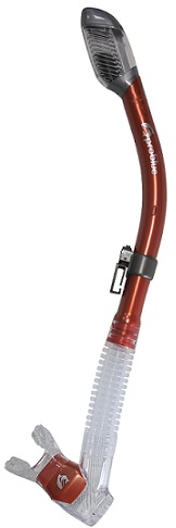 The Ornata Dry snorkel with splash guard and valve to keep you totally dry. Flex silicone tube with quick release snorkel keeper.  Removable mouthpiece and self draining purge valve.