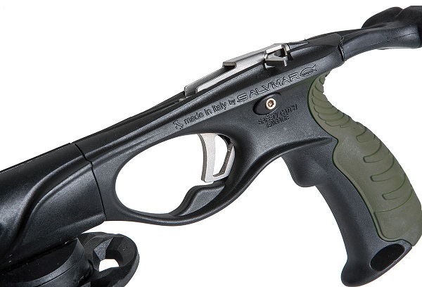 Gun has a removable chest loading butt pad and comes with Salvimar's stock vertical mount reel.