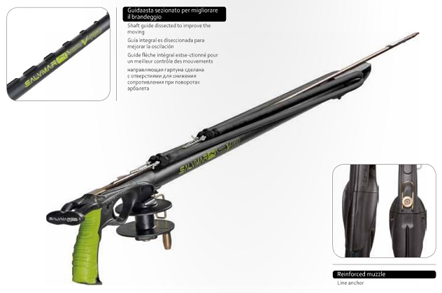 Arbalete with barrel made by a special aeronautical aluminium alloy of high mechanical performance, protected by an anodization process at high thickness. The integrated shaft guide is dissected towards the muzzle to improve the moving.