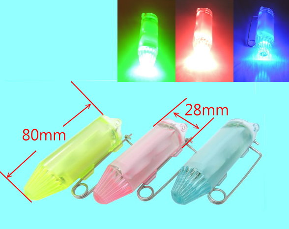 • Water activated "ON" switch turns glow LED Red (Blue or Green)