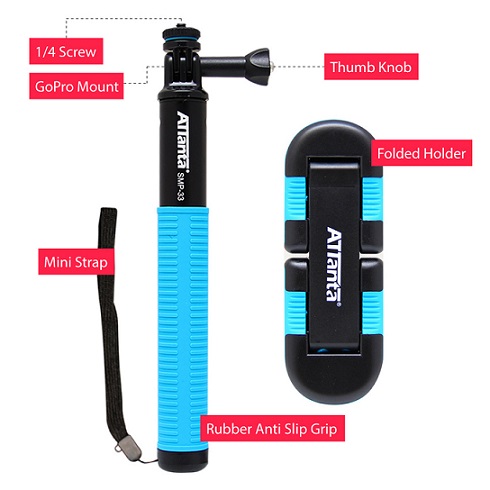 This monopod has a length of 23cm and can be extend to 104cm. Attanta Tongsis SMP-33 is made of titanium anti-rust material so it can be used for extreme sports or in the water.