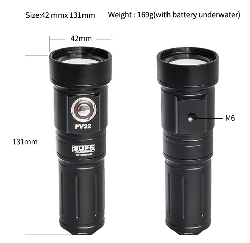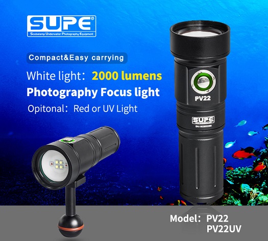 SUPE Scubalamp PV22 2000Lumens 110 degree White-UV Underwater Photography Video Light Scuba Diving Light 26650 battery