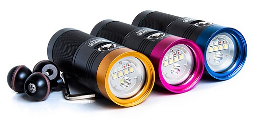 Scubalamp PV32T, amazing new video & exploration light with white, red, and blue (ultraviolet) lights. We have packed a lot of features in to a very compact package this time around. To start we have a massive 3000 lumen of white light at a very wide and smooth 100 degree beam to cover all of your regular video & photo lighting needs.