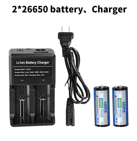 • Rechargeable 26650 Li-ion battery.