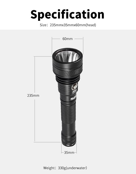 RD93 - TORCH SCUBALAMP NARROW ANGLE 15' W/ CHARGER + BATTERY (3000 LUMENS)