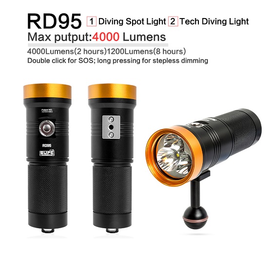 • The RD95 is designed to be used as primary lighting for any kind of underwater exploration dive.