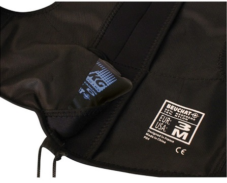 • Orange distress whistle attached to the vest