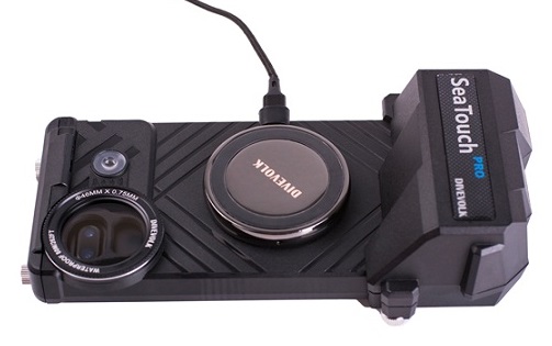 DIVEVOLK water splashes wireless charger for  SeaTouch 2 underwater diving housing. You can charge your smartphone without taking it out of the housing to avoid bringing in moisture during the diving interval.